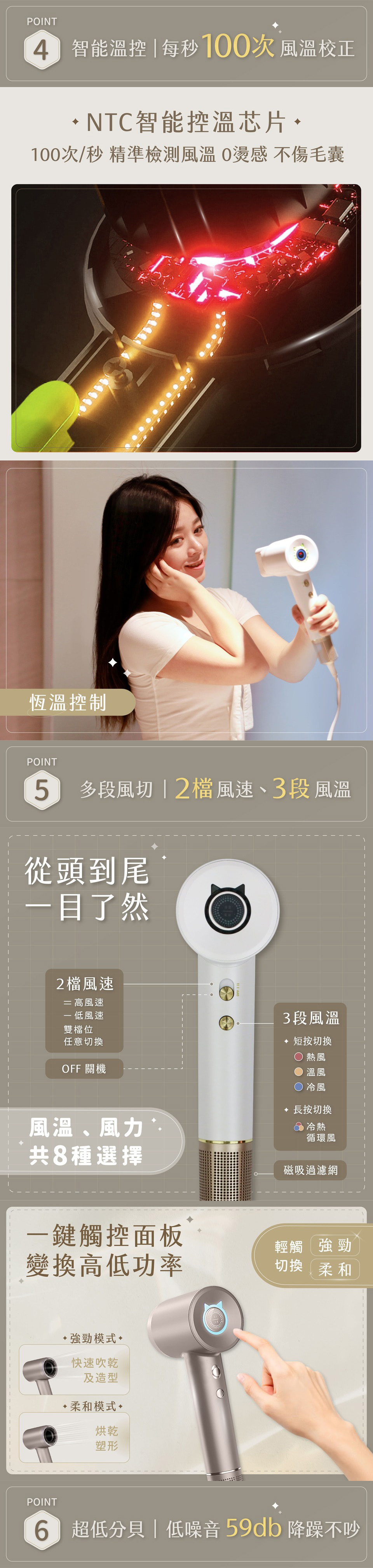 ♡準溫控|每秒100次風溫校正,保護毛囊,防止髮絲損傷